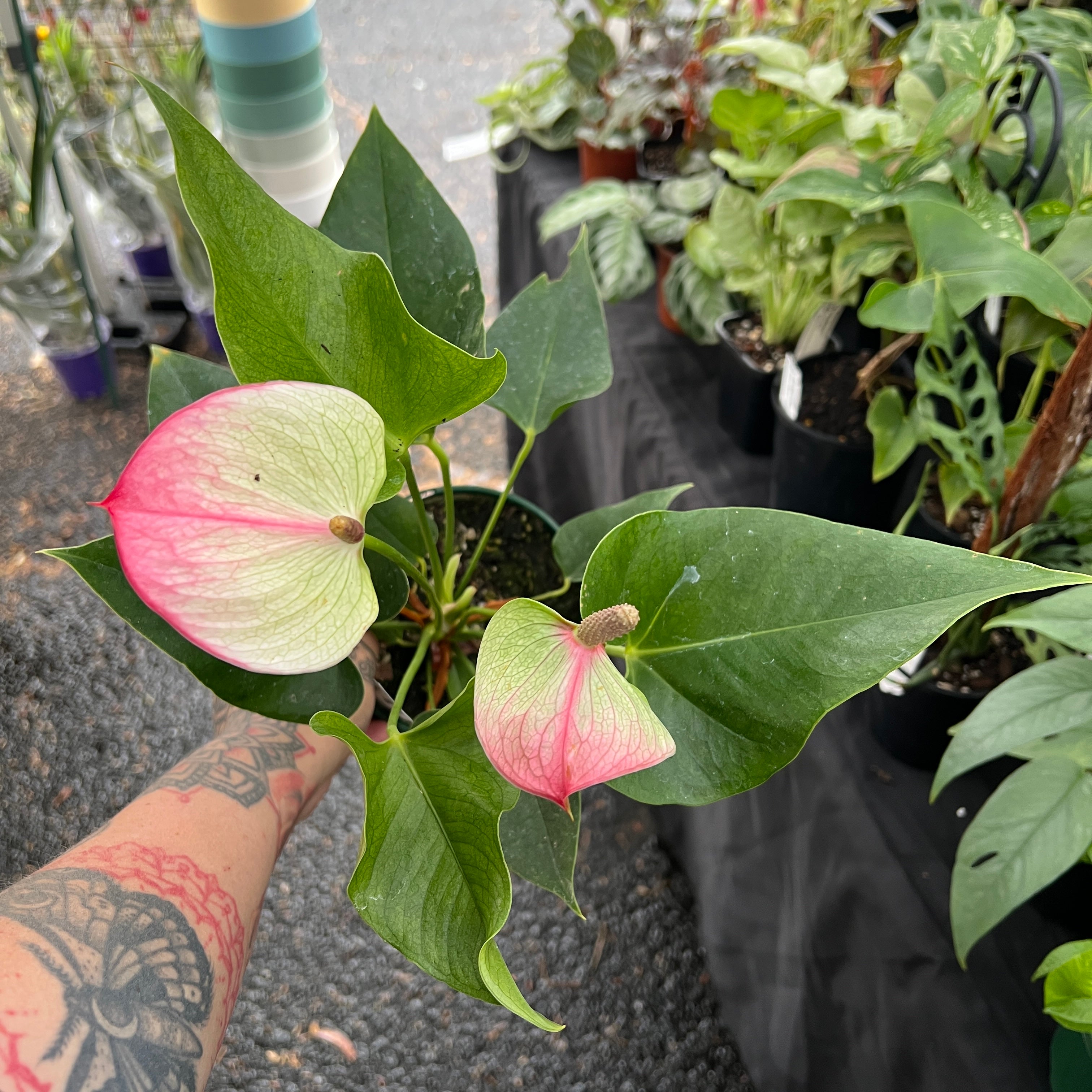 As natural epiphytes, Anthuriums grow on trees in the wild rather than in soil, so they need a chunky, airy mix that mimics their natural growing conditions. Our Ultimate Aroid Mix is absolutely perfect for Flamingo Flowers! The combination of orchid bark, perlite, coco coir, coco chips, and quality potting mix creates the ideal balance of drainage and moisture retention. This chunky structure allows air to reach the roots while still holding enough water to keep your plant happy. If you notice aerial roots growing from the stem, don't worry, that's completely normal and shows your Anthurium is thriving!
